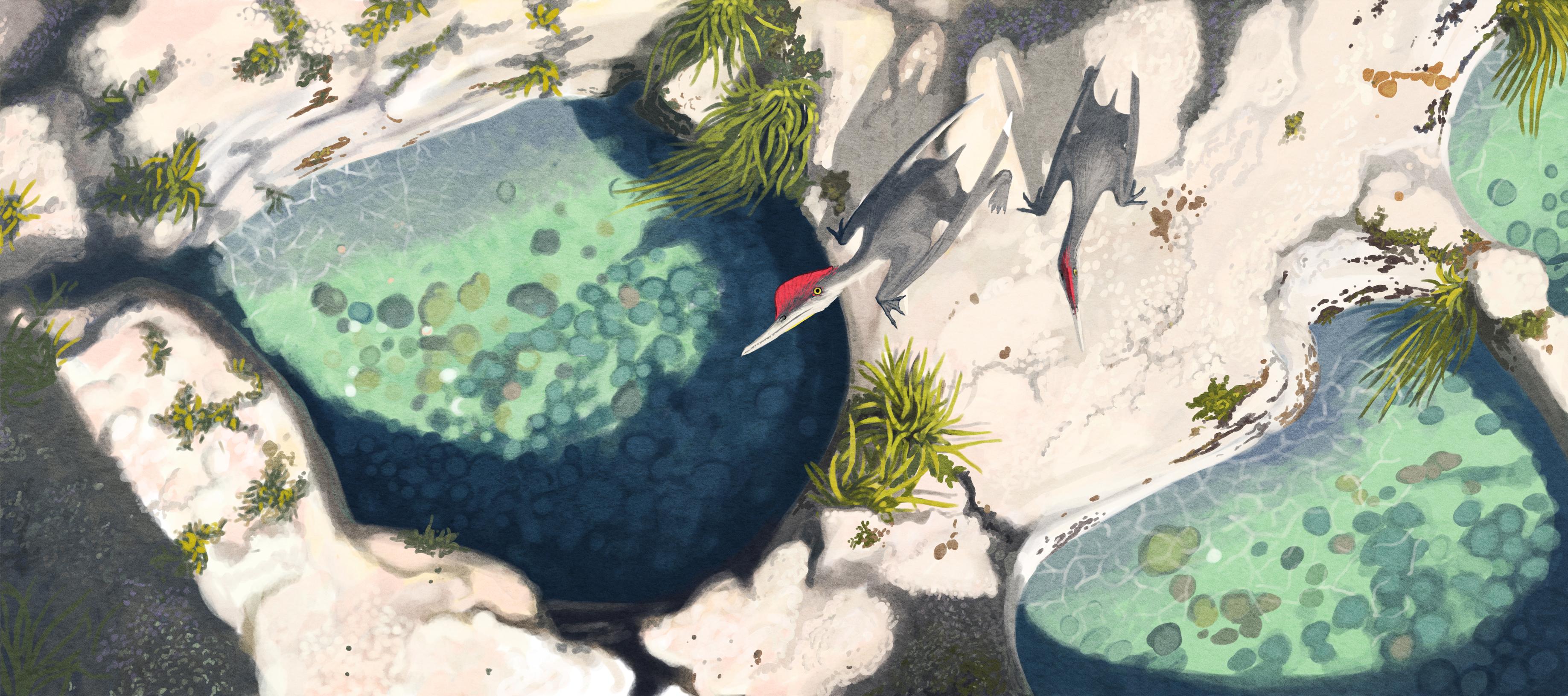 Germanodactylus cristatus inspecting some rock pools in Late Jurassic Germany.