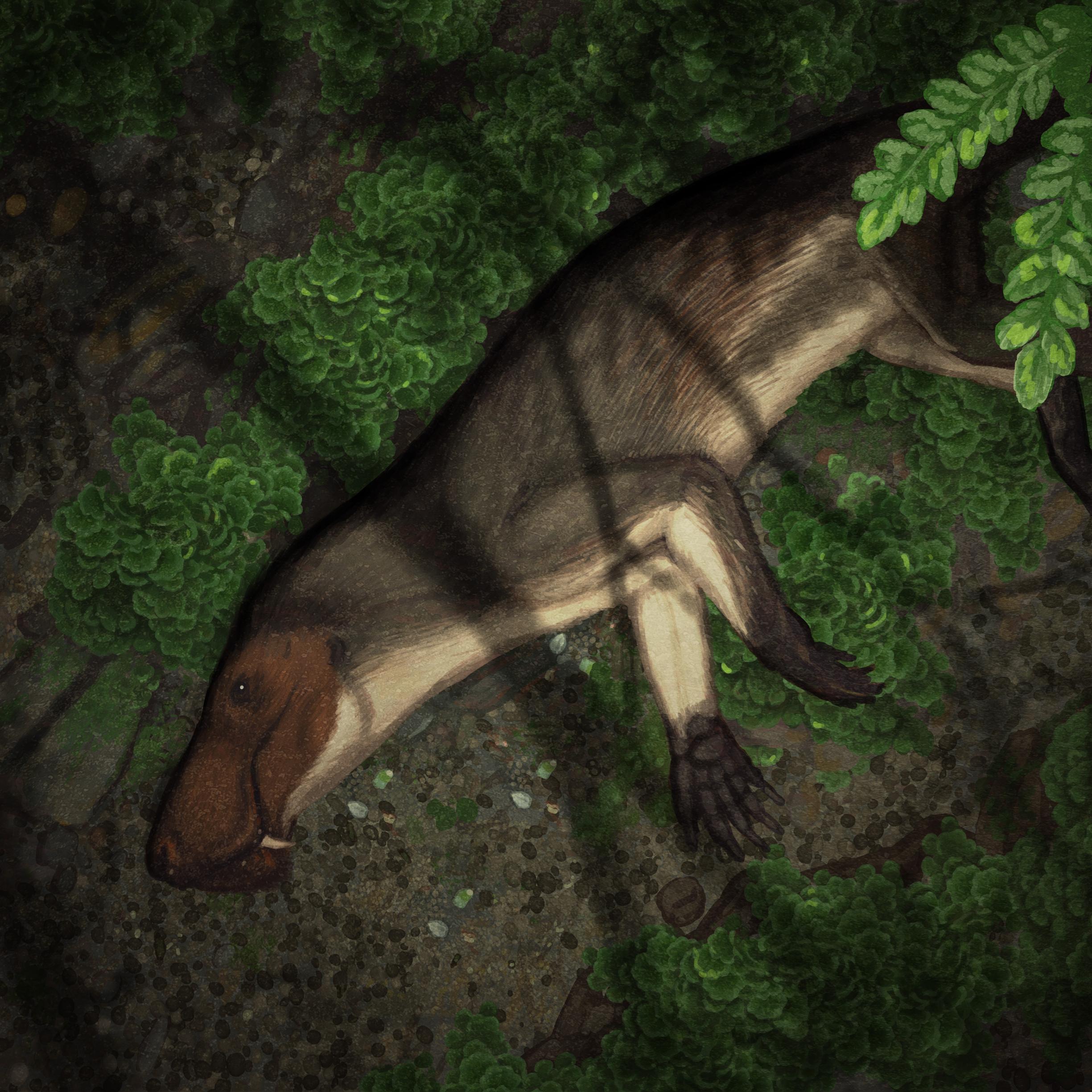Inostrancevia was a gorgonopsid from the Late Permian. It is shown here having a rest on some lovely liverworts.