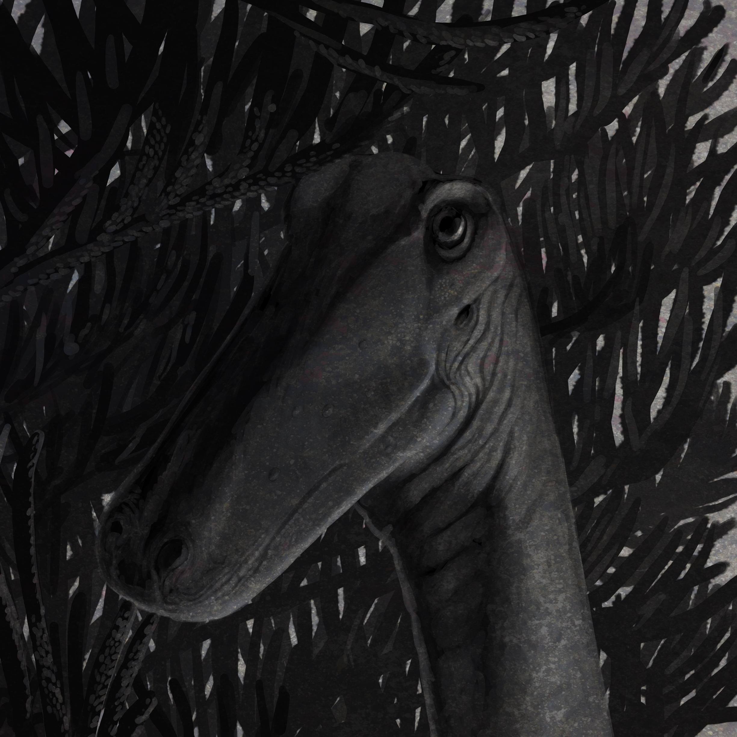 Khaan was a small birdy dinosaur that lived in Mongolia, about 75 million years ago. It's found some nice juniper berries to munch on.