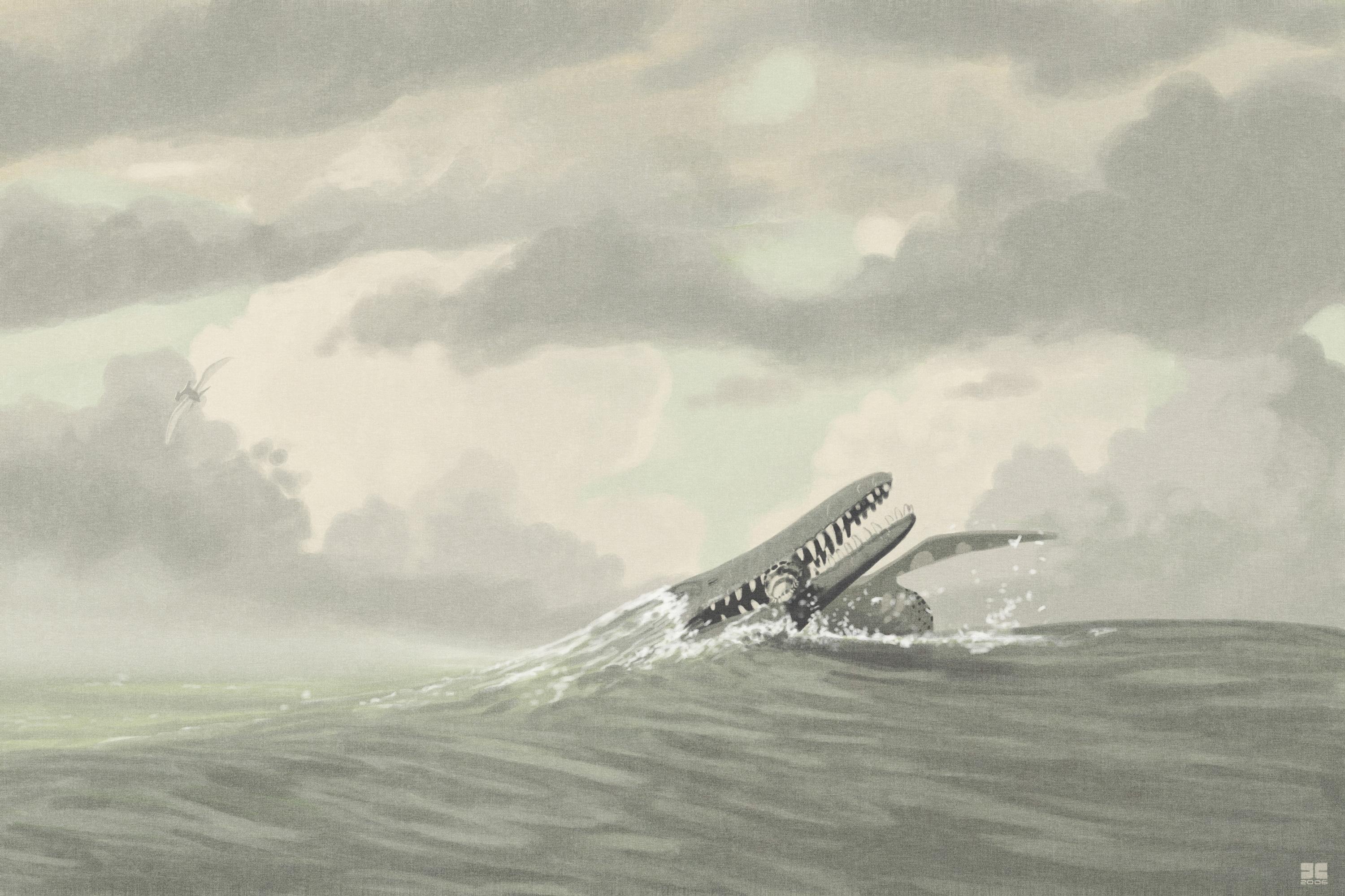 Kronosaurus queenslandicus takes a Leptocleidus at the surface to breath. Breathing must have been a bit nerve-racking for little plesiosaurs.