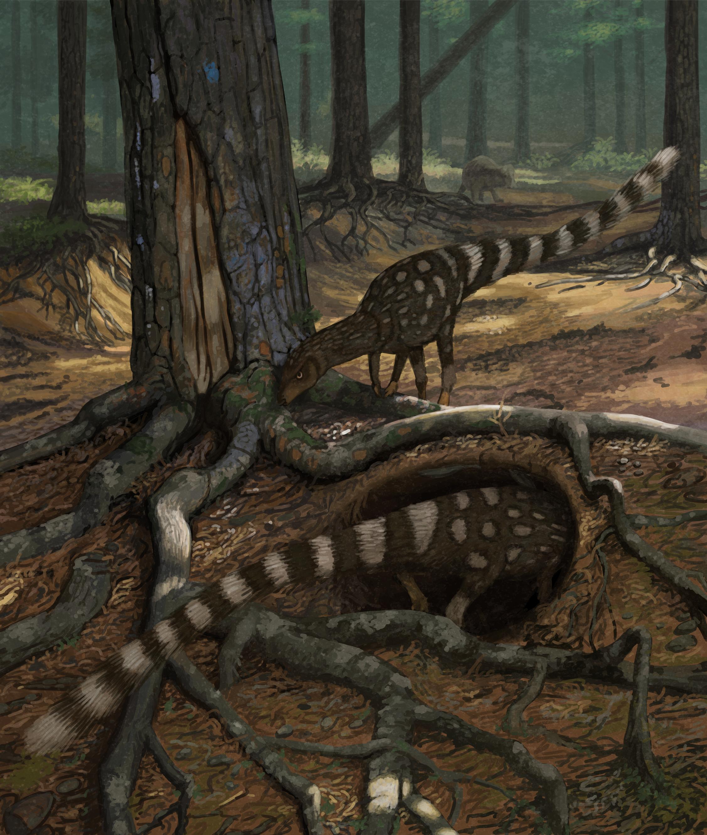 The fabulous fabrosaur checks out a burrow in Early Jurassic Lesotho.