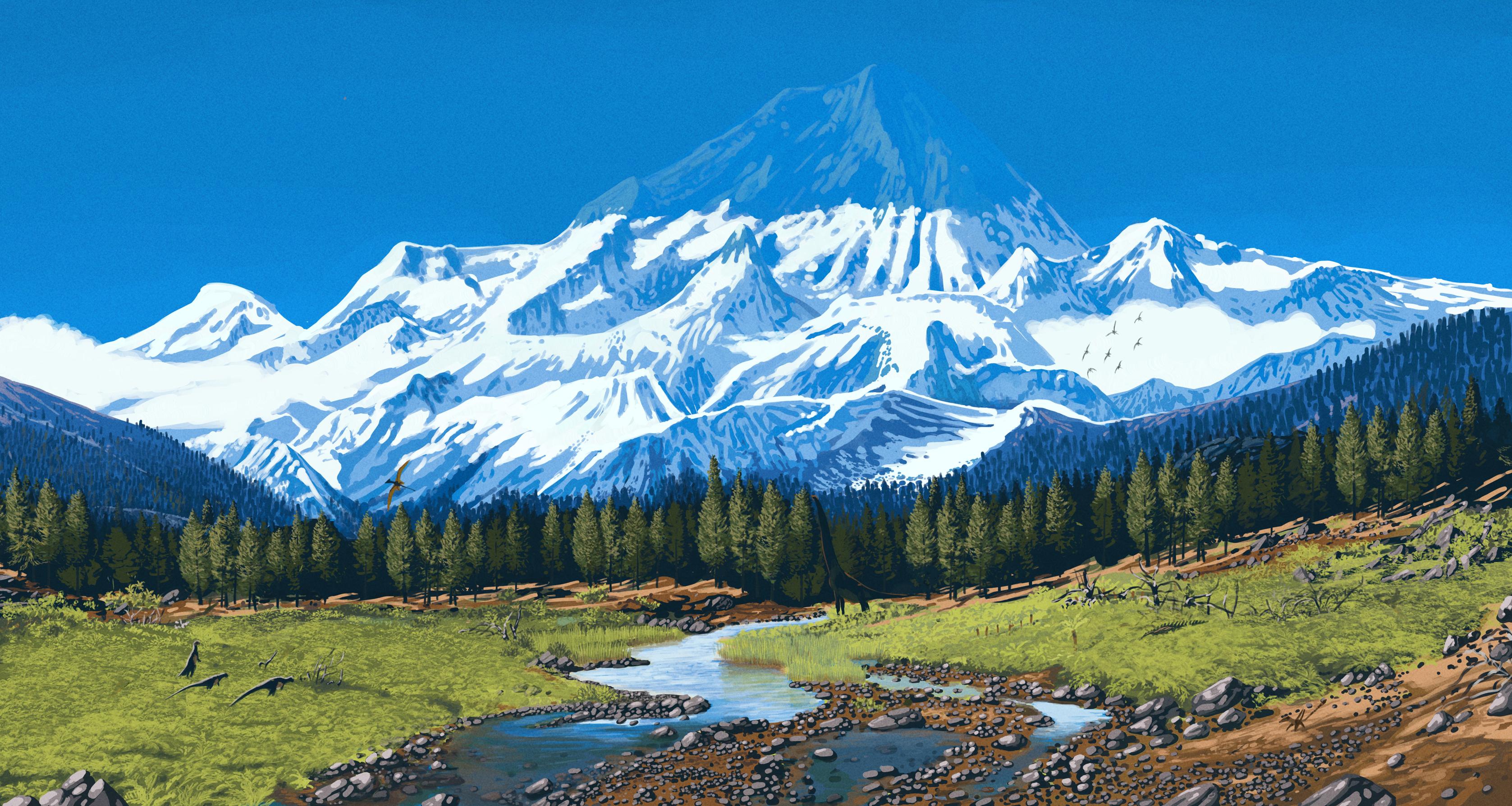 Sometime, somewhere in the Mesozoic, Mount Stratosphericus pokes a mile and a half into the stratosphere.