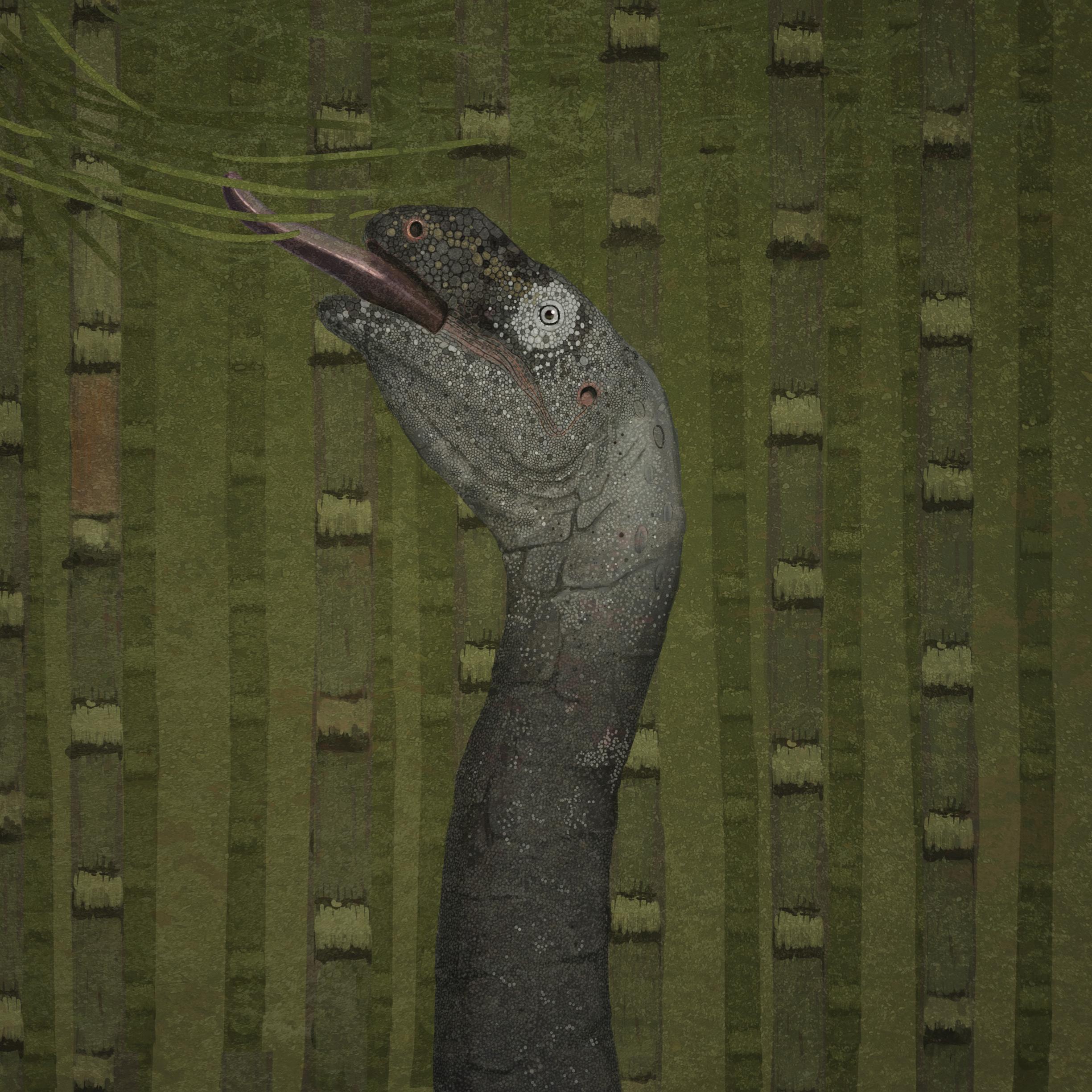 Plateosaurus engelhardti was a large(ish - okay, big cow-sized) sauropodomorph from the Triassic of Europe. I painted it with a big tongue for grabbing things, like these giant horsetails.