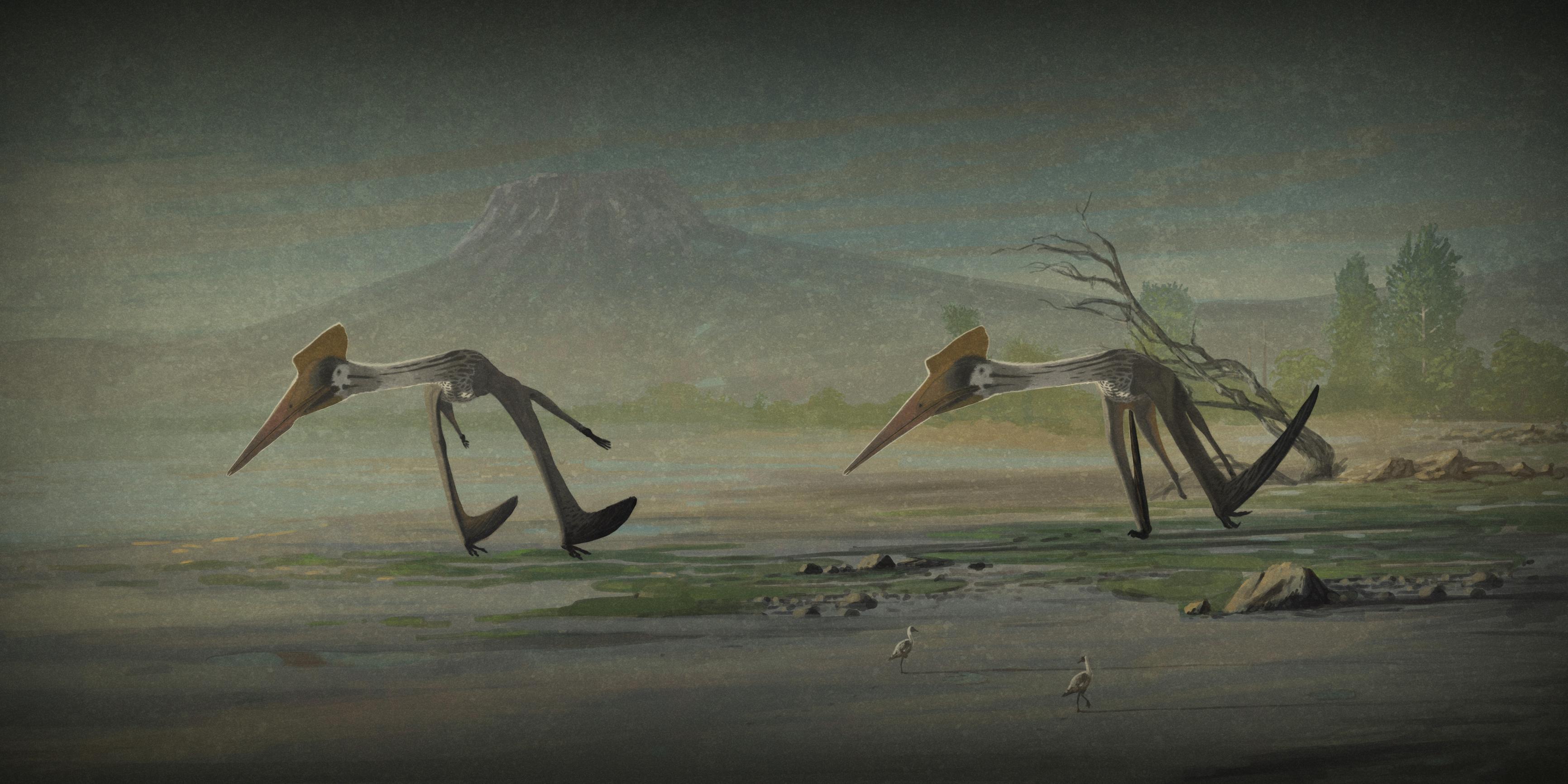 Quetzalcoatlus northropi, possibly the biggest flying animal, launching. This reconstruction is fairly speculative, as Q. northropi is known mostly from a partial wing, so the missing bits (most of it) are base on the littel Quetz.