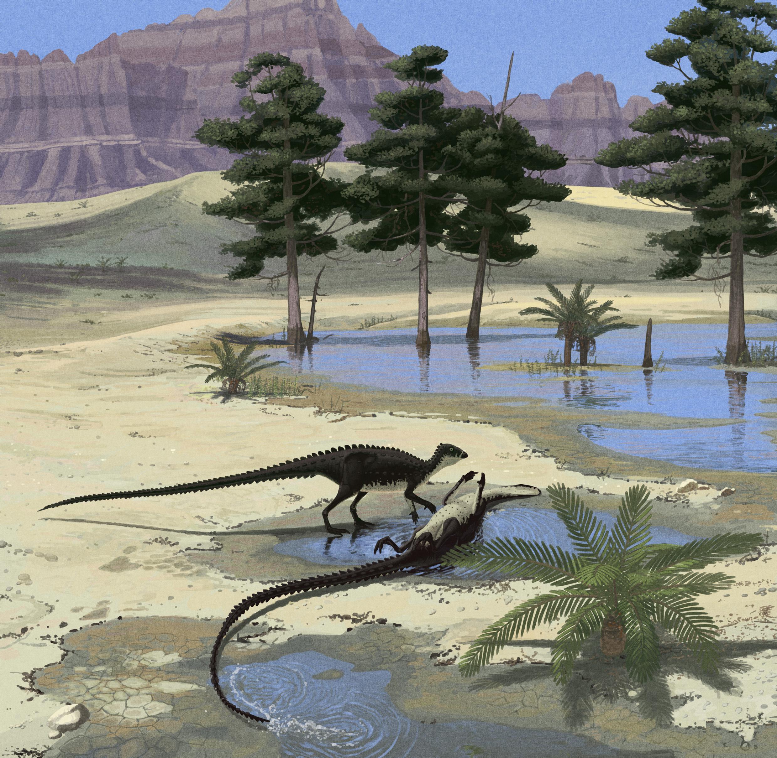 Two Scutellosaurus lawleri reach the promised land (196 million years ago in Arizona).