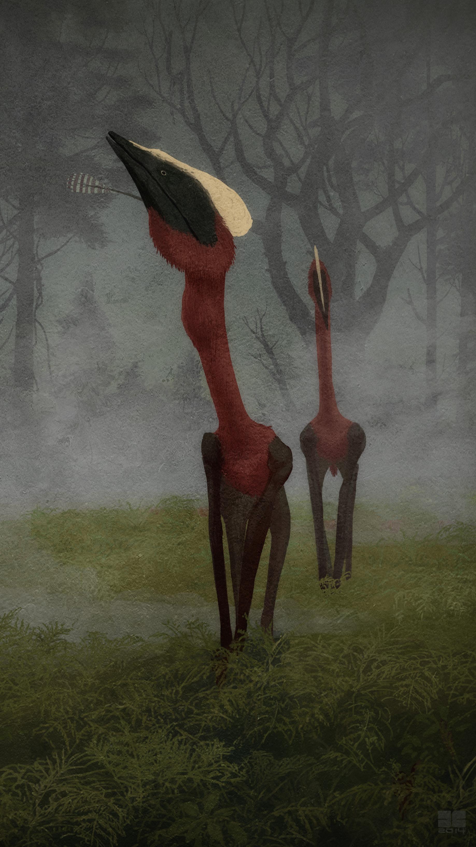 The pterosaur Zhejiangopterus linhaiensis is in teh dinosaur base, eatin' all their doods. Zhejiangopterus was an azhdarchid pterosaur from China, terrestrially stalking, as was (probably) their wont. I have given it a speculative soft-tissue crest — everything seems to have crests these days.